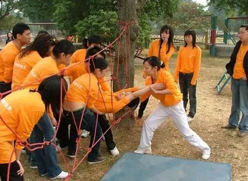 游戏规则:团队选出一名指挥者,其他全部蒙眼,所有人都要做到身体任何地方不得触碰绳子全员通过低矮的绳子,才算成功,此游戏建立成员信任,加强团队意识,领导能力。