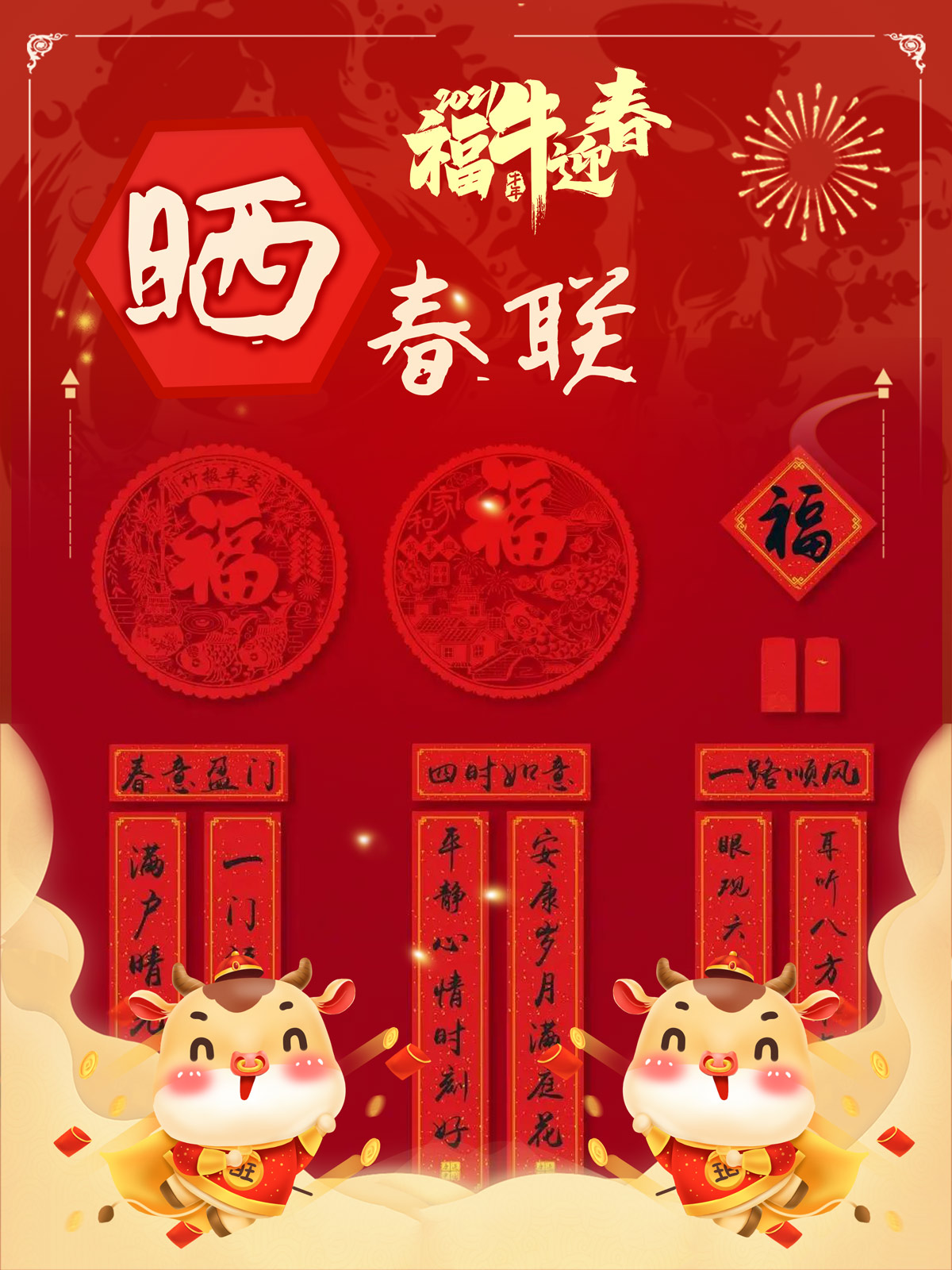 福牛迎春 晒春联