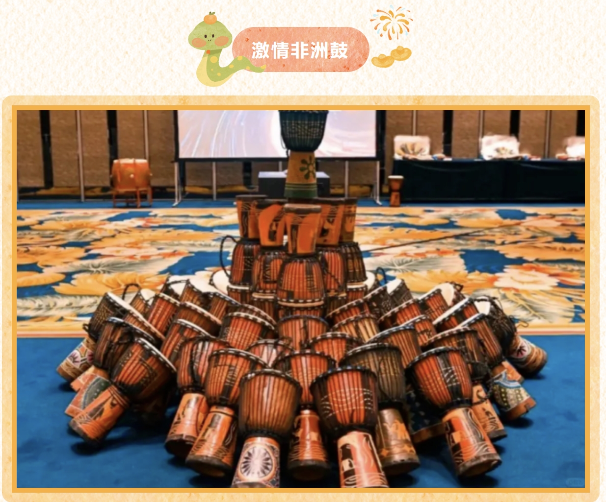 活动介绍:在这里,你将踏入神秘的非洲文化世界,团队成员围坐一起,齐心协力敲打出富有激情的鼓点,欢声笑语中,彼此的心越靠越近,体验别样文化魅力,一个团队、一个节拍、一曲属于团队的独特鼓乐,自由奔放的小音乐,是团队减压的最佳选择。