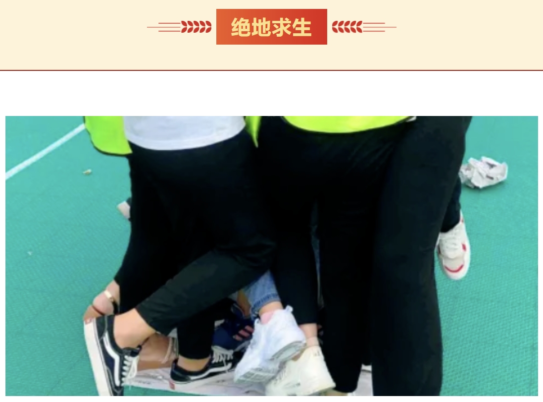 活动亮点:把一张报纸或垫子完全铺开,放置在地板上,在规定时间内一组队员所有人全部站到打开的报纸或垫子上,脚不能站出报纸或垫子的边界。