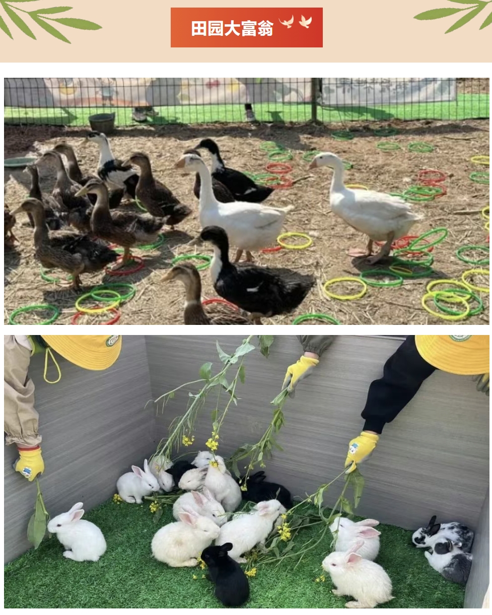 套大鹅/鸭、乡村射击场、挖野菜做青团、蔬果采摘、采茶制茶、露营烧烤。