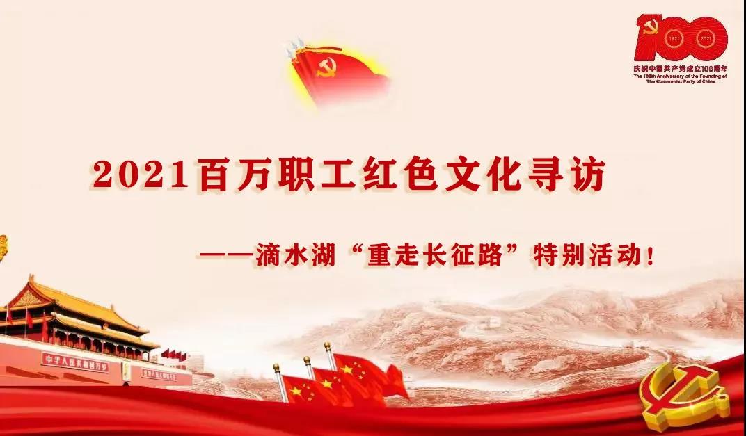 以“不忘初心,重走长征路”为主题,围绕滴水湖设置了10个打卡点,通过参加线上线下打卡活动,搭建学习交流平台,了解长征精神,营造学习党史学习主题教育的良好氛围。上海各区、局(产业)工会;工业园区、楼宇和非公企业工会、企事业单位工会及社会组织,均可在滴水湖自行组织开展红色文化寻访活动。