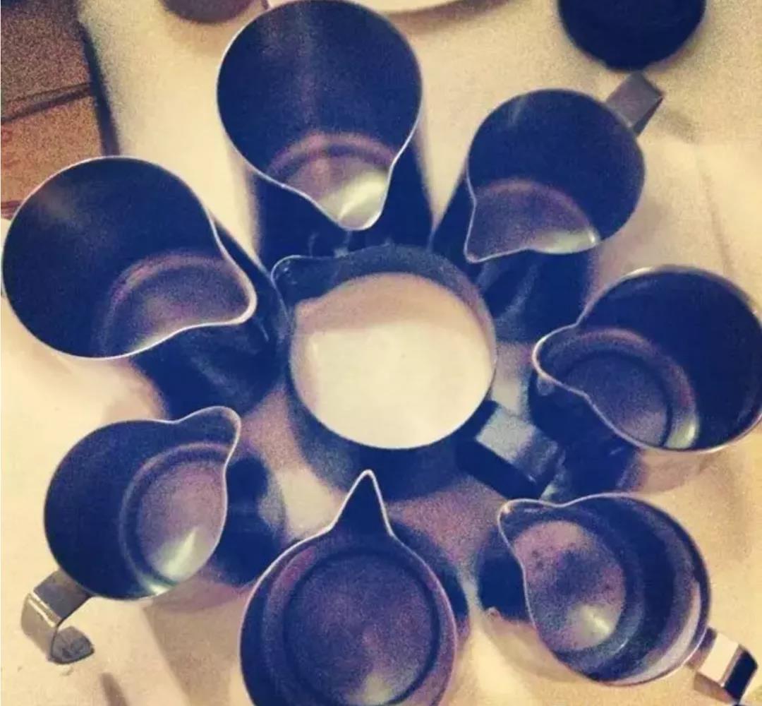一开始我们会将缸杯与咖啡表面的距离拉至10cm左右,这时候只要高度不要高到冲下去的牛奶会破坏Crema的表面即可。