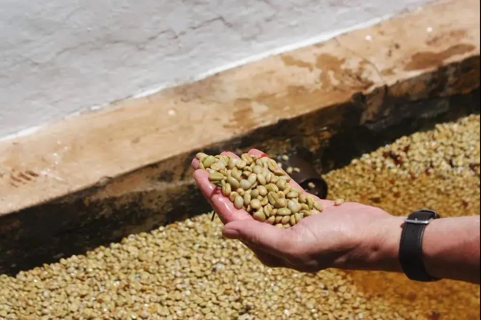水洗处理法:水洗处理法与日晒处理法不同,水洗处理法的出现确实让很多咖啡产区的豆子品质大大提高。因为先是去除果皮果肉以及果胶,使咖啡豆的含水量在日晒前已经大大减少,所以干燥时间也会大幅度缩短,降低了对天气的依赖。为了更好地去除果肉果胶,需要放在干净的水池里进行发酵然后清洗,所以需要十分充足的水源。