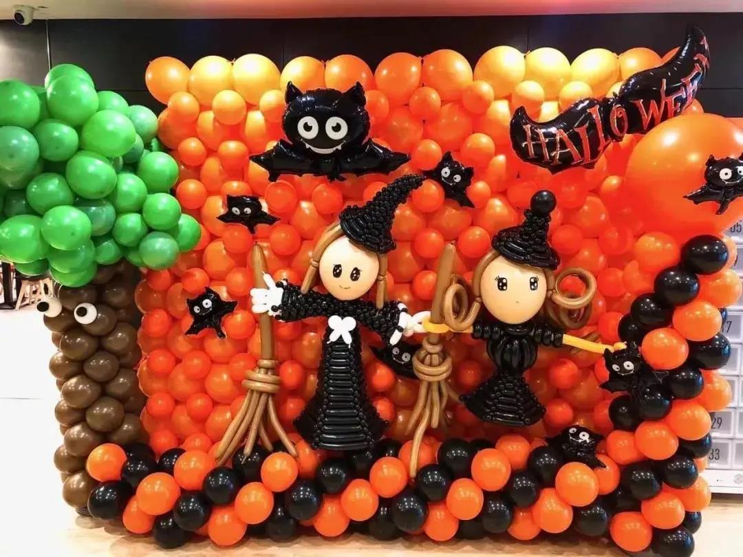 背景墙可以用气球女巫和南瓜装饰,把女巫造型的气球设计成「卡哇伊」风格,也可以为员工准备一批“可爱鬼”礼品玩具摆件,可以弱化万圣节的恐怖元素,提高员工的可接受度。