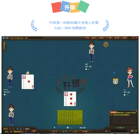 升级是一种既有趣又考验人的智力的一种扑克牌游戏