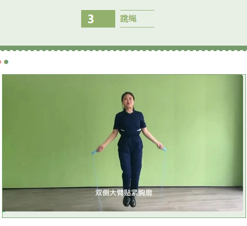 在运动过程中,每完成1个规定动作,需同时依次报数。视频总长度为3分钟左右,完成跳绳动作不低于200个。