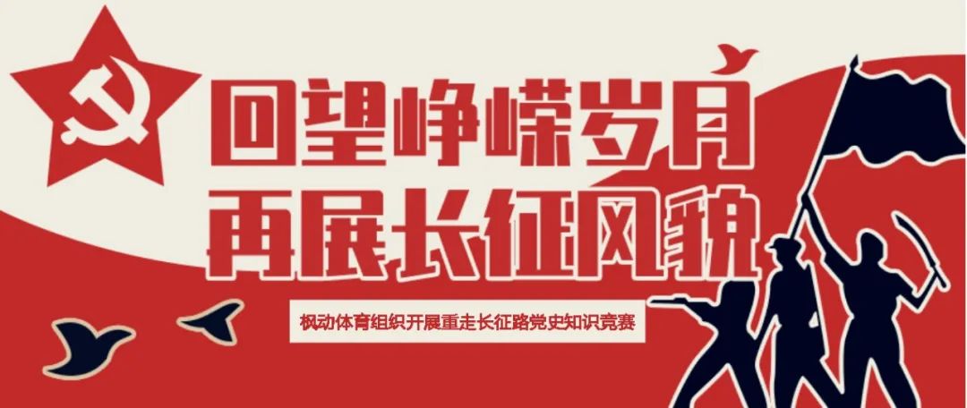 枫动体育组织开展重走长征路党史知识竞赛,掀起党史学习热潮活动赛事!通过趣味闯关,知识竞答的方式,传承弘扬“长征精神”,努力“走好新时代的长征路”。通过知识竞赛,引导大家在新时代发扬党的光荣传统、优良作风,切实把红色基因注入血脉、刻进灵魂,在学思践悟中坚定理想信念,在奋发有为中践行初心使命。